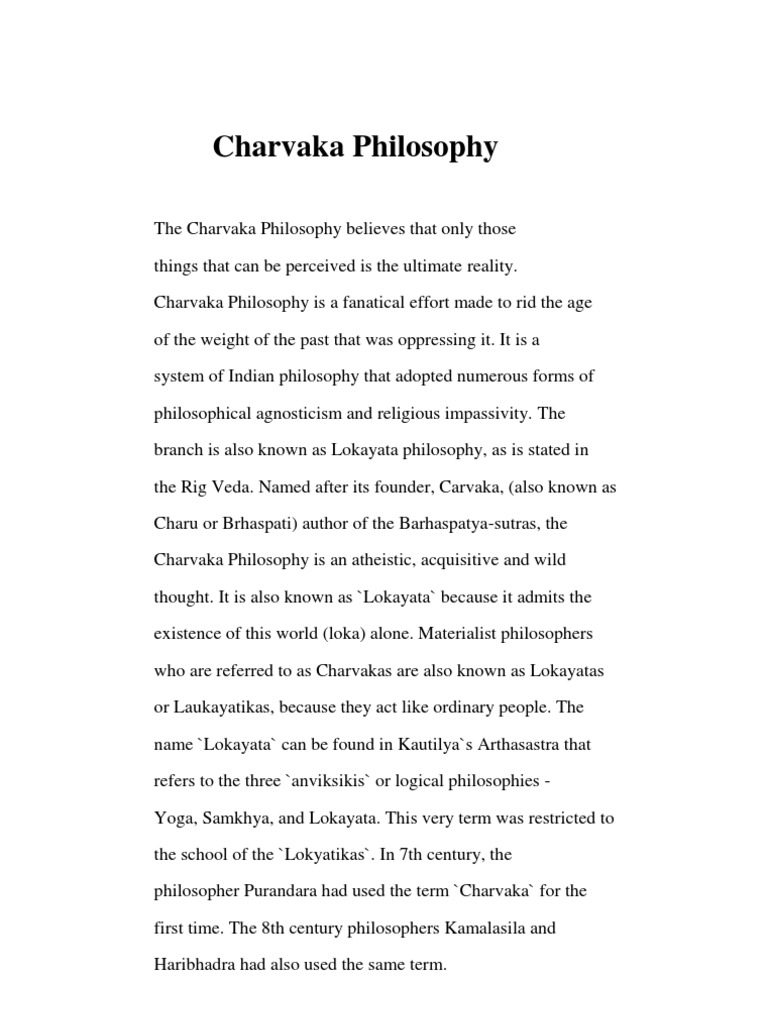 Hinduism Other Indian philosophies. The efforts of Charvaka hcarvaka indeed hard to be eradicated, for the majority of living beings hold by the current refrain: Ethics and The History of Indian Philosophy.